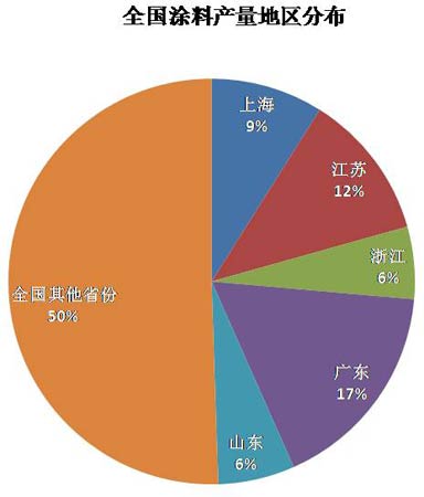 2008年9月15日,有158年历史的雷曼兄弟申请破产,将全世界一夜之间推向了经济崩溃的边缘。作为世界工厂,全球的经济衰退对中国经济有了不可避免的负面影响。而随着以出口为支柱家具,玩具到五金等各个产业在过去的一年中的萎缩,涂料产业也经历了困难的一年。根据官方统计数字,今年一至六月,涂料总产量377万吨,比去年同期下降7.9%。在出口大省广东,涂料产量更是下降了15.4%。在雷曼兄弟破产一周年的今天,中国涂料产业何处去? 要想分析涂料产业的前景,必须对中国涂料的产业结构有个准确的了解。中国涂料业有两个特点: 工业油漆是产业支柱:虽然今年上半年涂料界最大的新闻是各大涂料品牌纷纷展开广告战,热闹非凡,但中国涂料行业真正的支柱是默默无闻的工业涂料产业。根据今年一至六月的统计,建筑涂料只占了全国涂料产量的29%,而工业涂料是中国涂料产业的主体,比重达到了71%之多。(图一) 涂料生产地区集中:传统上,中国的涂料油漆生产集中于珠江三角区,长江三角区和渤海三角区。从省份而言,五大涂料生产省份是广东,江苏,浙江,山东,上海。在今年上半年,前五大涂料省的产量占全国总产量的50%,其中,广东一个省的产量就占了全国的17%。涂料生产的集中性与产地外向型的经济基础有密切的联系。(图二) 图一:中国涂料产量分类 图二:中国涂料地区分布